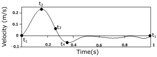 The numerical simulations were performed considering an unsteady inlet velocity profile as depicted in Figure 1. Taylor and Draney [40] have quantified the blood flow at the infrarenal aorta and they described an inlet velocity profile as a function of time for the complete cardiac. On this basis, Carneiro et al. [41] approximated a curve to a sinusoidal function through a numerical method using the CoNum, a numerical application written in C++ developed at the University of Minho, in order to achieve the maximum velocity of the pulsatile waveform and define the inlet velocity value.