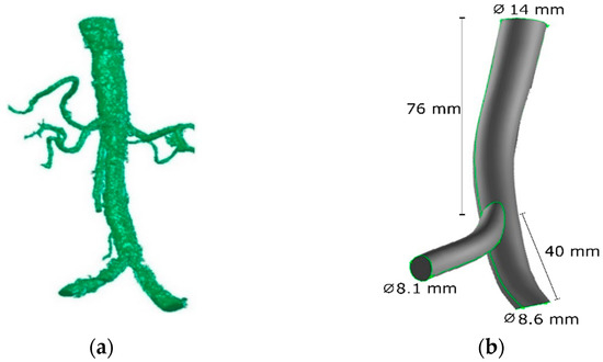 Over the years, this pathology has been deeply studied; however, the focus has essentially been on the carotid [9,10,11,12] and coronary arteries [13,14,15,16], since these are the most commonly affected arteries. Nevertheless, the abdominal aorta branches are also of great importance, such as the renal arteries and iliac bifurcation [5,17,18,19,20]. According to the literature, patients with atherosclerotic lesions in the iliac arteries will probably show coronary disease with varying degrees of severity [21]. Moreover, when these arteries are affected, claudication can occur, which is characterized by ischemic muscle pain or weakness brought on by exertion and promptly relieved by rest [22,23]. In the presence of this pathological condition, three scenarios can occur, namely, amputation, revascularization, or the death of the patient as a result of cardiovascular events [23]. Given the impact of this disease on human health, some investigations have been conducted [18,24,25,26,27,28], but further hemodynamic studies in these stenotic arteries are needed.