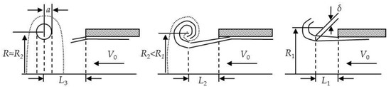 Diagram of the vortex ring formation process: δ —the thickness of the boundary layer; R—the radius of the VR (defined as the radius of a circle with zero velocities in the coordinate system associated with the VR); a—the radius of the core of the VR (the radius of the vortex thread).