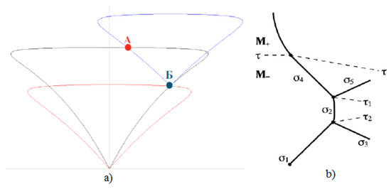 Gas dynamic waves and discontinuities can be divided into two large groups. The first group includes normal waves and discontinuities through which the gas flows, and they are referred to as shock wave processes. The second group includes contact and tangential discontinuities, through the surfaces of which the gas does not flow, and they cannot be considered shock wave processes. A tangential discontinuity is also called a sliding line because it can separate the flows of various gases with different densities, velocities and temperatures. The static pressure on opposite sides of the tangential discontinuity is always the same. The tangential discontinuity is usually denoted by the symbol τ. It appears in shock wave structures formed as a result of the interaction of shock waves with each other and with solid walls. The reason for the formation of tangential discontinuity lies in the fact that at different shock waves, included in the shock wave structures, the value of the total pressure loss and, accordingly, the flow rate is different.