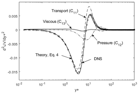 33) term may slightly modify the structure near the wall, but at high Reynolds numbers, it appears to be negligible relative to the other two terms in Equation (6).