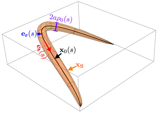 - Walker, B.J.; Curtis, M.P.; Ishimoto, K.; Gaffney, E.A. A regularised slender-body theory of non-uniform filaments. J. Fluid Mech. 2020, 899, A3. [Google Scholar] [CrossRef]