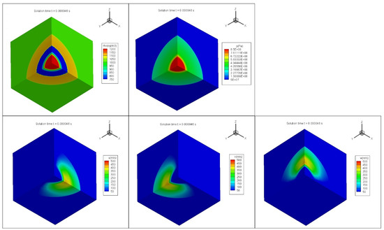 - Fedkiw, R.P.; Marquina, A.; Merriman, B. An Isobaric Fix for the Overheating Problem in Multimaterial Compressible Flows. J. Comput. Phys. 1999, 148, 545–578. [Google Scholar] [CrossRef] [Green Version]