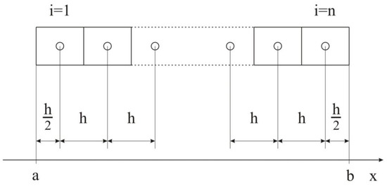 We first need to solve the Riemann problem using the Godunov method [25] for every pair of cells ( and ) with data ( and ), respectively. As a result, the values of the large variables are obtained, which are assigned to the grid cells as follows: