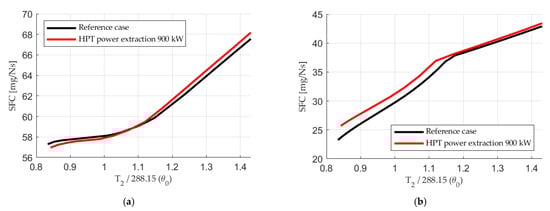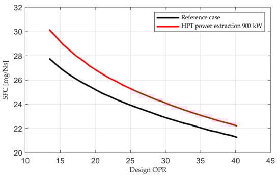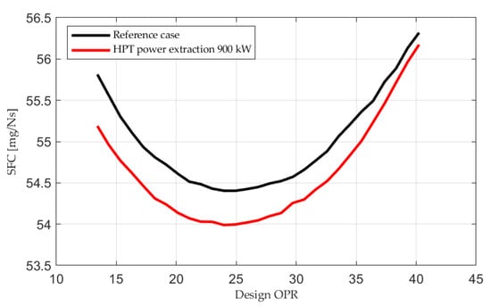 SFC deviation with HPT power extraction compared to the reference case.