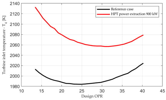 Turbine inlet temperature, T4, with and without HPT power extraction.