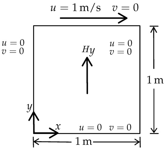 3.1. 2D Lid-Driven Cavity Problem in the Presence of a Magnetic Field