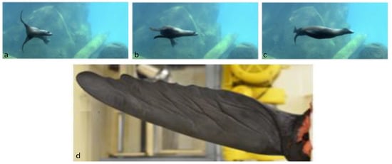 - Friedman, C.; Leftwich, M.C. The kinematics of the California sea lion foreflipper during forward swimming. Bioinspir. Biomim. 2014, 9, 046010. [Google Scholar] [CrossRef] [PubMed]