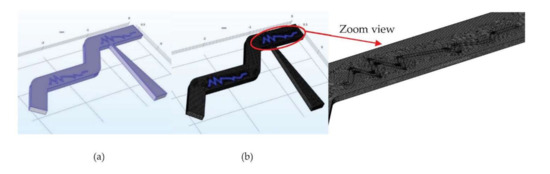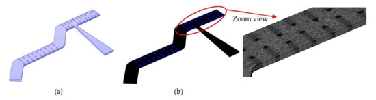 Corrugated dragonfly wing microchip: (a) Computational domain; (b) Computational domain meshing.