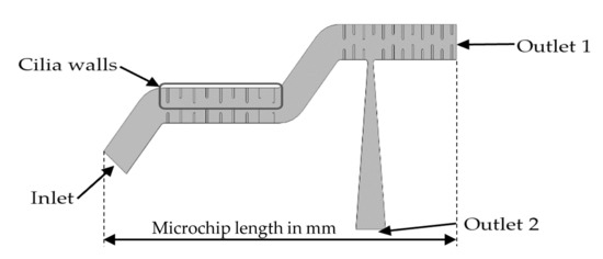 In this work, the design reference was taken from [19,20,21] and modifications were done to study and test the performance of the microchip in particle capture and separation applications. In continuation, the cilia walls were employed to enhance the particle separation efficiency in the microchip design.