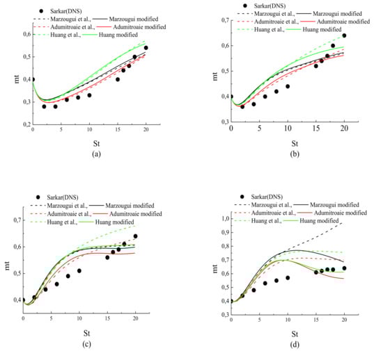 is based in order to revise the previous models. For this revision, the Khlifi et al. [20] model was chosen to modify the C1 and C2 coefficients in [11,12,13]. The reason behind this choice is that model [20] involves Mt and Mg, as suggested by different studies cited previously, and it is linked to to distinguish between low- and high- regimes. Thus, all of the coefficients of models [11,12,13] are expressed as a function of the turbulent Mach number and the gradient Mach number. Considering Equations (11) and (12), the proposal coefficients models are summarized in Table 2.