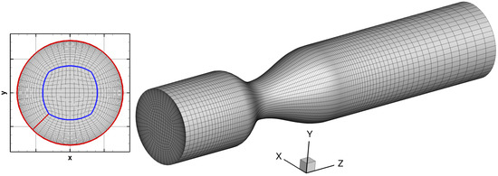 In this study, we follow the experimental set-up introduced in [27]. The first computational domain represents a non-symmetric cosine-shaped vessel stenosis shown in Figure 9.