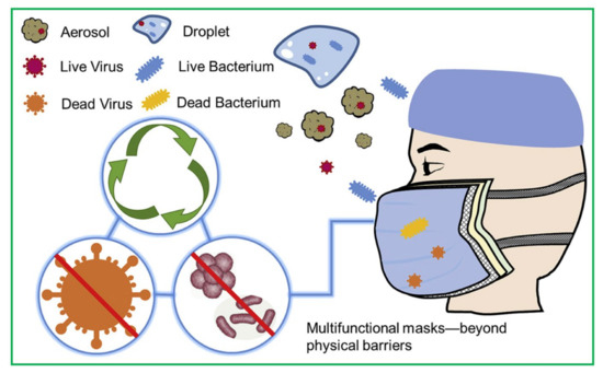 - Liao, M.; Liu, H.; Wang, X.; Hu, X.; Huang, Y.; Liu, X.; Brenan, K.; Mecha, J.; Nirmalan, M.; Lu, J.R. A Technical Review of Face Mask Wearing in Preventing Respiratory COVID-19 Transmission. Curr. Opin. Colloid Interface Sci. 2021, 52, 101417. [Google Scholar] [CrossRef]