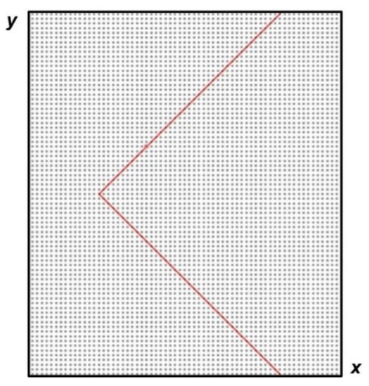 Figure 2. In the calculations, the staggered numerical grids are used with the distance between the nodes at each time level equal to 2