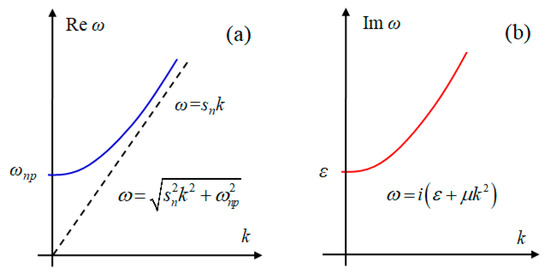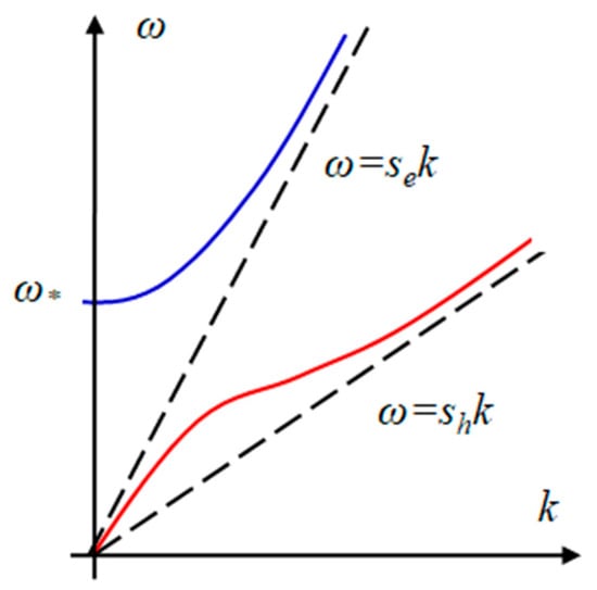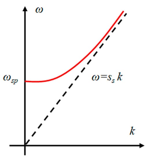where is the frequency and is the wave number. The schematic plot of the dispersion relation Equation (24) is represented in Figure 1.