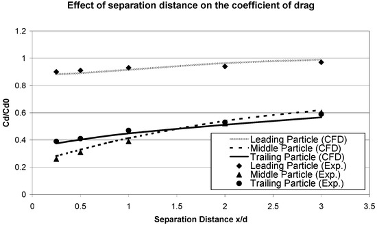 Figure 5 shows the good agreement between the experimental study of Liang, Hong and Fan [19] co aligned particle work and the present CFD validation work, where cd is the drag force coefficient on the test particle and cd0 is the drag force coefficient on an isolated particle. The CFD model was able to predict the drag force accurately on all three particles.