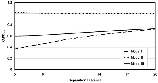 Model 1 looks at the case of infinite number particles co-aligned with the direction of flow (see, Figure 8a). This Model highlights the influence of particle wake on the drag force when aligned with the flow direction. The ranges of the simulations completed for this Model 1 include particle separation distances of 1 to 20 particle diameters and particle Reynolds numbers varying from 1 to 50.