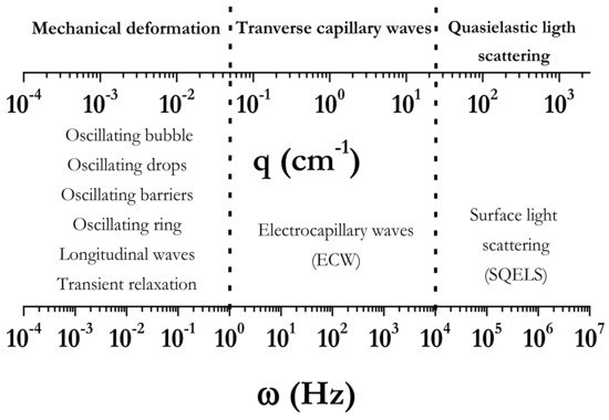 A traditional approach exploited for the evaluation of the mechanical response of fluid/fluid interfaces against high frequency dilational deformations relies on the study of the damping of capillary waves. These can be generated upon the application of mechanically, thermally, or electrically driven perturbations of the interface, when their propagation happens along the fluid/fluid interface. During their propagation, the waves are dampened by the action of surface forces that try to restore the flatness of the interface [22,67,68,69,70,71].
