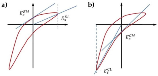 where is the Fourier transform function, is the time evolution of the interfacial tension, is the time evolution surface area, and ω is the angular frequency. The complex modulus can be split into its real (Es) and imaginary components (Ev), which correspond to the storage and loss moduli, respectively [43,44]. Assuming an oscillatory deformation of small amplitude and a fixed frequency ω, it is possible to define the complex dilational viscoelastic modulus as complex magnitude according to the following expression: