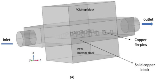 With two validations presented, the model is modified, as shown in Figure 1a. The effectiveness of using this design for heat storage in the presence of phase change material is investigated.