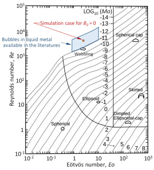 - Zhang, J.; Ni, M.-J.; Moreau, R. Rising motion of a single bubble through a liquid metal in the presence of a horizontal magnetic field. Phys. Fluids 2016, 28, 032101. [Google Scholar] [CrossRef]