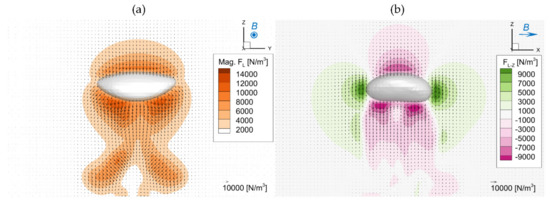 where is the surface tension coefficient; is the curvature, which is evaluated here by use of the height function using the 3 × 3 × 7 stencil proposed by López, et al. [29]; and α is the volume fraction of the liquid phase. The Lorentz force is defined as: