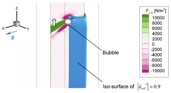 - Schwarz, S.; Fröhlich, J. Numerical study of single bubble motion in liquid metal exposed to a longitudinal magnetic field. Int. J. Multiph. Flow 2014, 62, 134–151. [Google Scholar] [CrossRef]