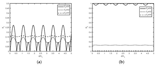 Figure 3a,b, the occurrence of zero reflection and full transmission in the absence of friction happens due to constructive and destructive interference of the trapped waves. The peaks in each bandwidth of Bragg reflection coefficient