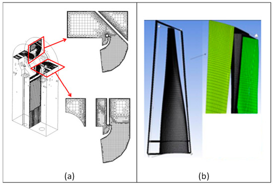 Grid details. (a) Multiple mixing plane at the interface between the LSMB and the diffuser and (b) last-stage moving blade discretization [19].