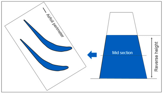 Schematic representation of the airfoil perimeter at the midsection and reverse-flow height.