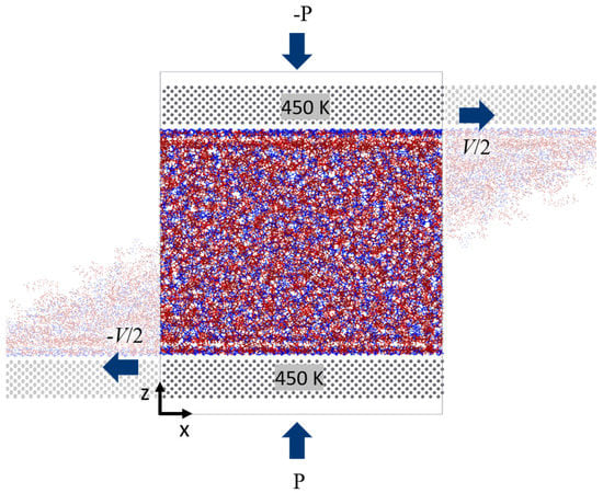 All simulations are run under an elevated temperature of 450 K, at a range of external pressures applied to the confined liquids, and at various shear rates to simulate realistic and extreme operational conditions [82,83,84].