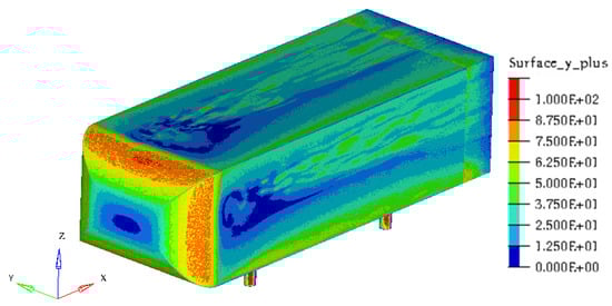 In addition, as expected with the solver wall function, the dimensionless wall distance displayed in Figure 3, is lower than 100 so that the boundary layer around the Ahmed body is correctly computed.