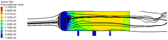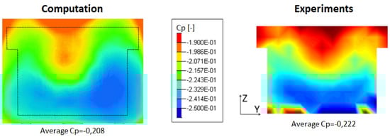 Furthermore, the flow topology in the back is correctly computed as shown in the rear back pressure map displayed in Figure 5. It denotes a similar flow topology between the numerical simulation and the experiment.