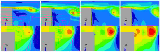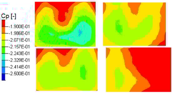 In Table 1, the pressure minimum values and their distance in the (XZ, Y = 0) cut plane from the back wall for the upper and lower recirculation areas are presented (see also Figures 24–26). Minima pressure centers are lower for the suction jet meaning that the wake negative pressure is less influence by the actuation. Their positions are also closer to the rear back wall and the reerence case. The blowing phase has more influence on the resulting wake pressure loss. However pulsed suction jet still gives better drag reduction than pulsed blowing jet. This property is related to the near wake recirculation asymetry and will be explained later.