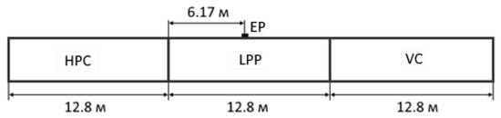 To obtain a Mach number of 0.212 at the interface between the LPP and VC, a pressure of 0.565 bar was set in the VC [26]. To ensure the stability of the calculation, it was assumed that the HPC contained water vapor in a very low concentration. The size of the radii of solid particles varied from m to m.