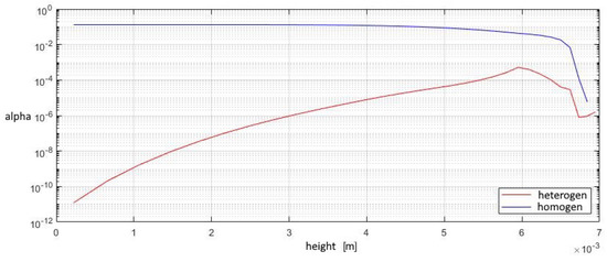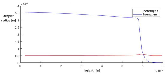 If the rate is less than , homogeneous nucleation does not occur; however, otherwise both the presence of homogeneous and heterogeneous condensation is possible. This condition is taken into account in Equations (5)–(8) using the coefficient , calculated from the value of from (19):
