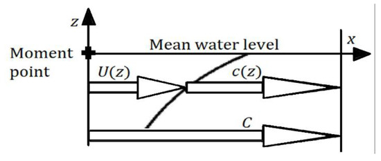 As shown in Figure 4, two different phase speeds are adopted: relative to the origin and relative to Similarly, the circular wave frequency relative to the origin is while the circular frequency of the water is . From now on, arguments are usually included the first time a variable appears only.