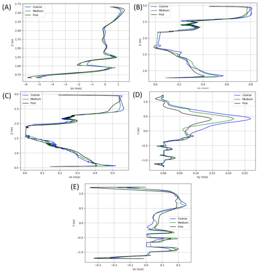 Slices of velocity taken at the bus driver location. (a): X-velocity; (b) Y-velocity; (c) Z-velocity.