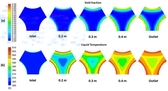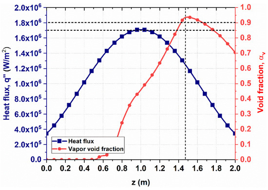 Figure 7 shows the comparison between predicted DNB in this study and experimental DNB data [21] for tubes. It can be observed from Figure 7 that the maximum and mean errors are 12% and 4.5%, respectively, as opposed to the mean error of 7% and maximum error of 15% using the empirical models [24]. A typical void contour at DNB is shown in Figure 8.