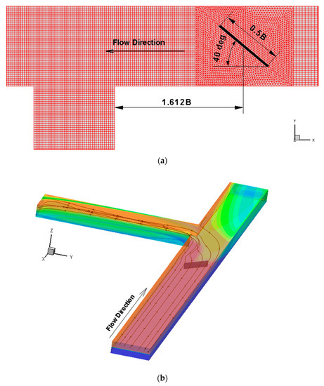 - Ramamurthy, A.S.; Qu, J.; Vo, D. Numerical and experimental study of dividing open-channel flows. J. Hydraul. Eng. 2007, 133, 1135–1144. [Google Scholar] [CrossRef]