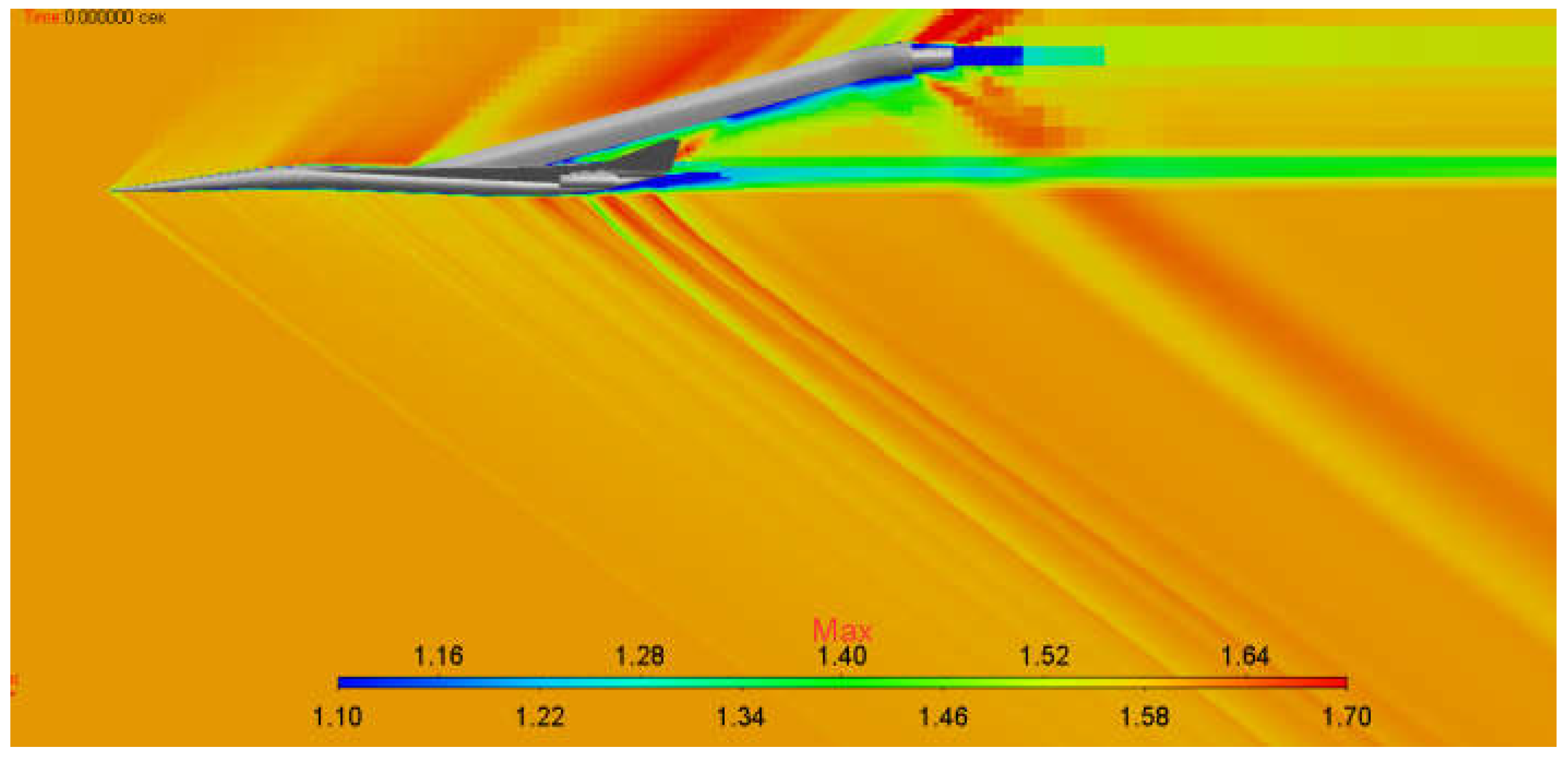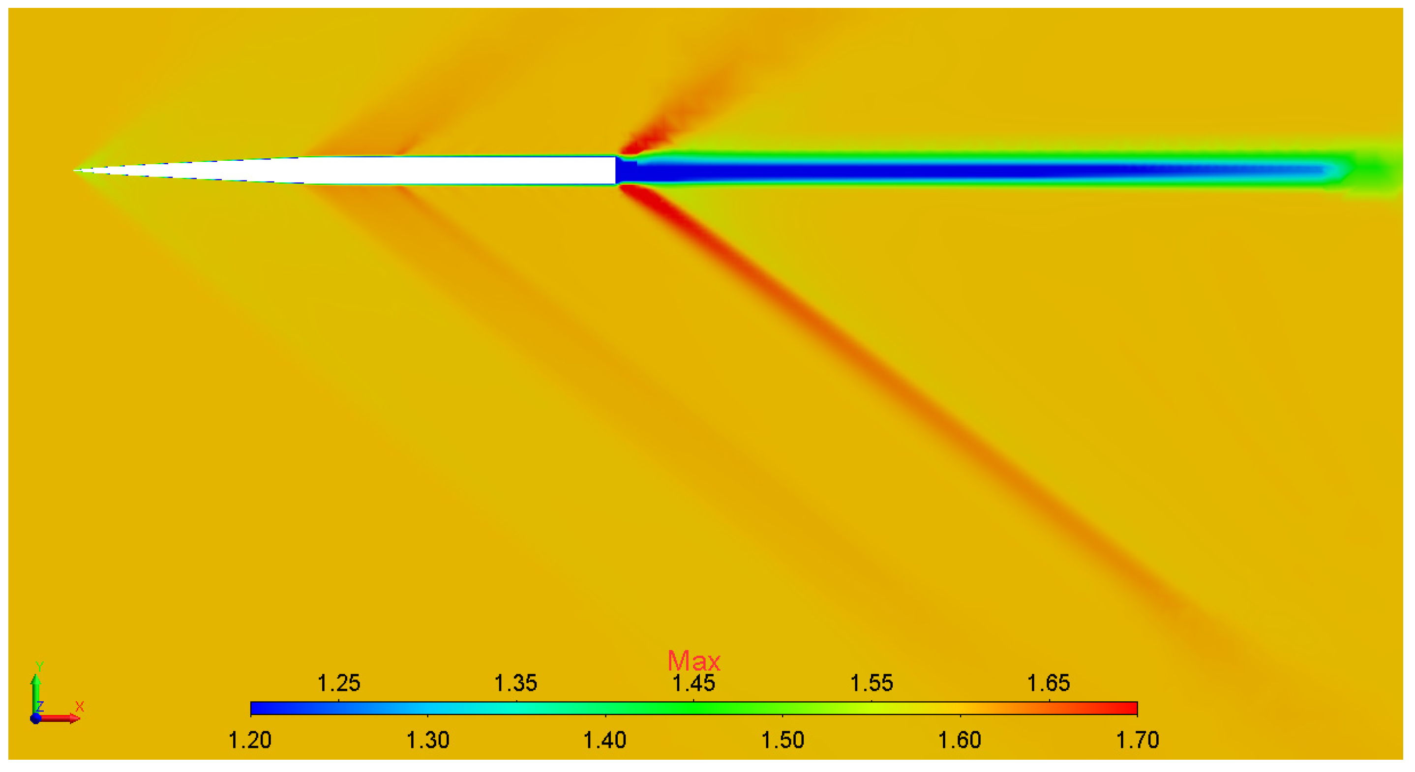 5.2. Simulation of Supersonic Flow around a Model of Aircraft Lockheed Martin 1021 (LM1021)