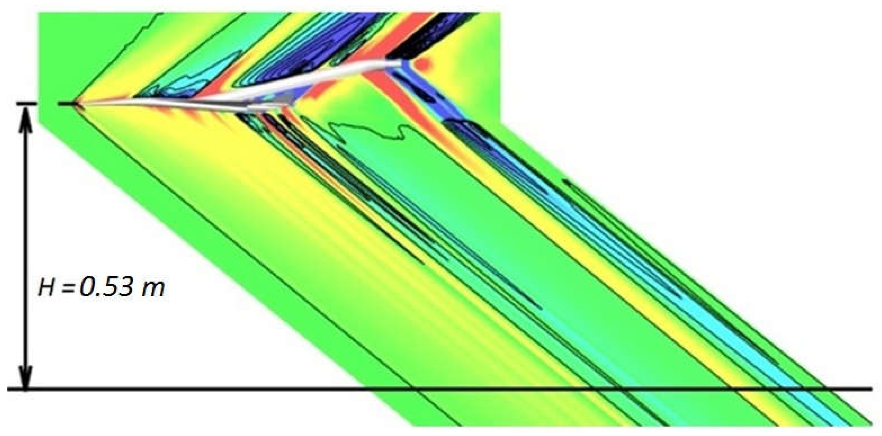 - Waithe, K. Introduction of First Low Boom Prediction Workshop. In Proceedings of the 51st AIAA Aerospace Sciences Meeting, Grapevine, TX, USA, 7–10 January 2013; AIAA: Reston, VA, USA, 2013; Volume 650. [Google Scholar]