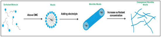 The transformation of conventional surfactant to worm-like micelles (Reprinted with permission from Fei et al. [39]). Copyright 2017, The Korean Society of Industrial and Engineering Chemistry. Published by Elsevier B.V.