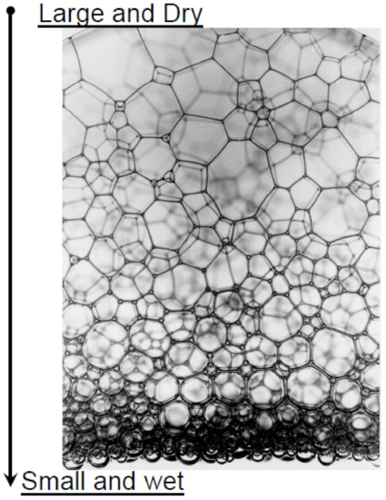 - Wang, J.; Nguyen, A.V.; Farrokhpay, S. A critical review of the growth, drainage and collapse of foams. Adv. Colloid Interface Sci. 2016, 228, 55–70. [Google Scholar] [CrossRef] [Green Version]