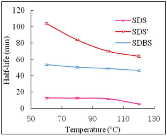 The decrement in the half-life of foam with increasing temperature (Reprinted with permission from Lv et al. [47]). Copyright 2015, American Chemical Society.