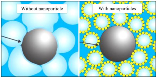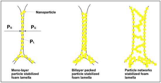 The stability of foam can also be significantly improved with the addition of nanoparticles. Nanoparticles are materials that are very small in size (1–100 nm) and have high reactivity with other particles due to their significant surface area [40]. Nanoparticles aid with foam stability by two mechanisms. First, nanoparticles attached to the liquid-gas interface can act as a wall which will restrain the bubbles from combining [30]. Next, nanoparticles also block the pathway for the liquid to be drained by gravity which will also inhibit the bubbles to merge due to the thinning of liquid films between the bubbles [4]. This matter will be further discussed in detail in Section 4 (Nanoparticle as a Foam Stabilizing Agent).