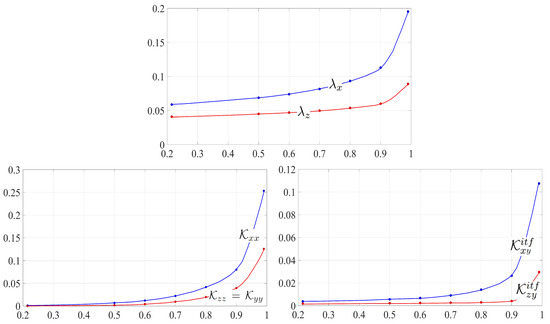 We remark that, in this case, and do not correspond to any value of , and do not contribute to the interface conditions. Eventually, the following values of the macroscopic coefficients were attained for the case of longitudinal cylindrical inclusions with porosity :