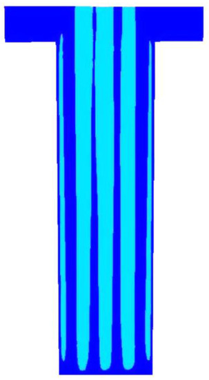 3.3. Fluid Flow Contour and Distribution of Velocity