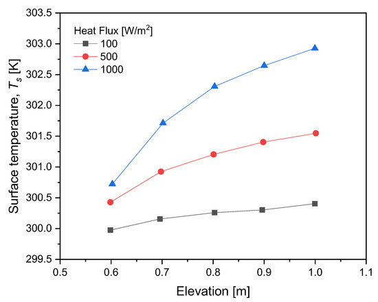| Wall (heater) | Heat flux | 100, 500, and 1000 W/m2 |