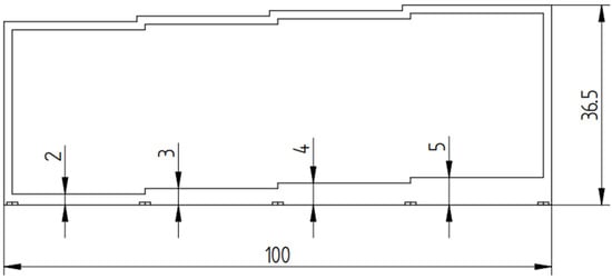 Building on existing research concerning the optical properties of FDM-printed PLA, the effects of wall thickness on transparency and illumination setups were investigated in order to determine a suitable combination of illumination, coloring, and material. In order to investigate the different optical properties, a dedicated test tank was designed. The test tank does not represent a final configuration for a satellite; it has an open fluid chamber, with different wall thicknesses on the front side. The back side was adapted accordingly to ensure a consistent fluid volume behind the front wall. A technical drawing of the printed tank can be seen in the experiment description. A detailed description of the challenges involved in comparable experiment setups is provided by Quero et al. []. For example, unavoidable small air-filled voids between the deposited layers can lead to a reduction in transparency due to multiple boundary layer interactions. The previous literature has focused on individual aspects of the optical characteristics of FDM-printed plastics, for example, different treatment methods for improving the transparency of printed PETG. However, these methods usually cannot be applied to complex structures, and can, for example, reduce the tensile strength of PETG [].